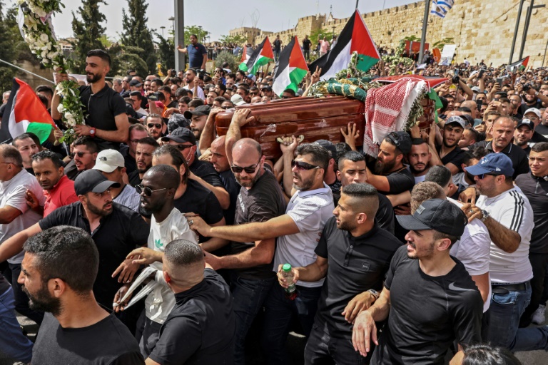 Des milliers de Palestiniens ont participé aux obsèques de la journaliste américano-palestinienne d'Al Jazeera, tuée mercredi d'une balle dans la tête alors qu'elle couvrait un raid militaire israélien en Cisjordanie, territoire palestinien occupé par Israël depuis 1967. Elle portait un gilet pare-balles siglé "presse" et un casque de reportage.