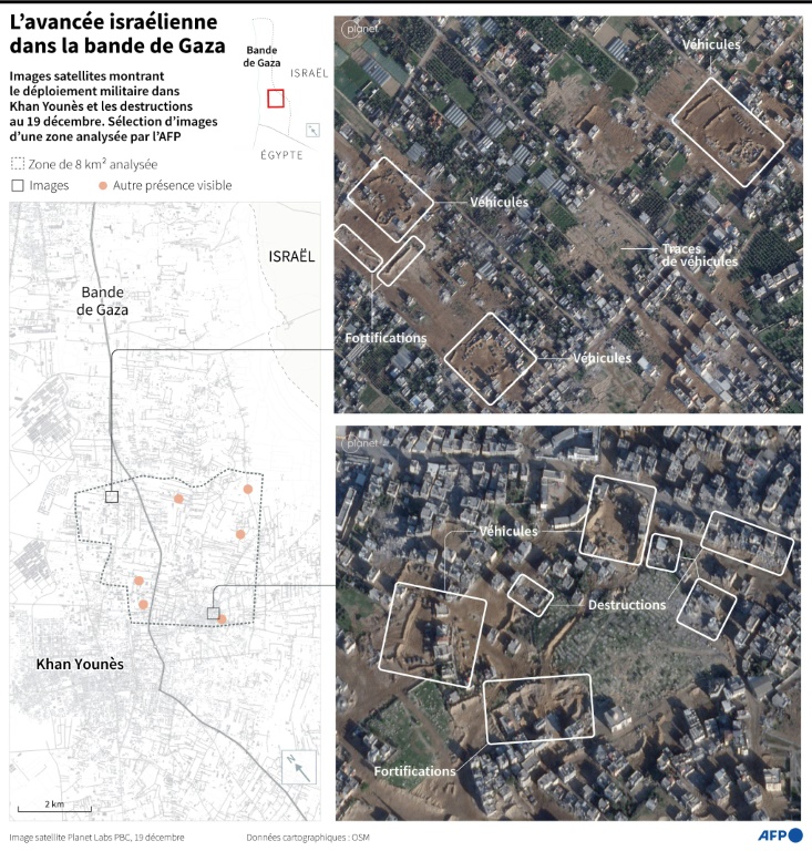 Dans ce contexte, les efforts des médiateurs égyptien et qatari se poursuivent pour tenter de parvenir à une nouvelle trêve, après celle d'une semaine fin novembre qui avait permis la libération de 105 otages et de 240 Palestiniens détenus par Israël et l'acheminement de davantage d'aide.