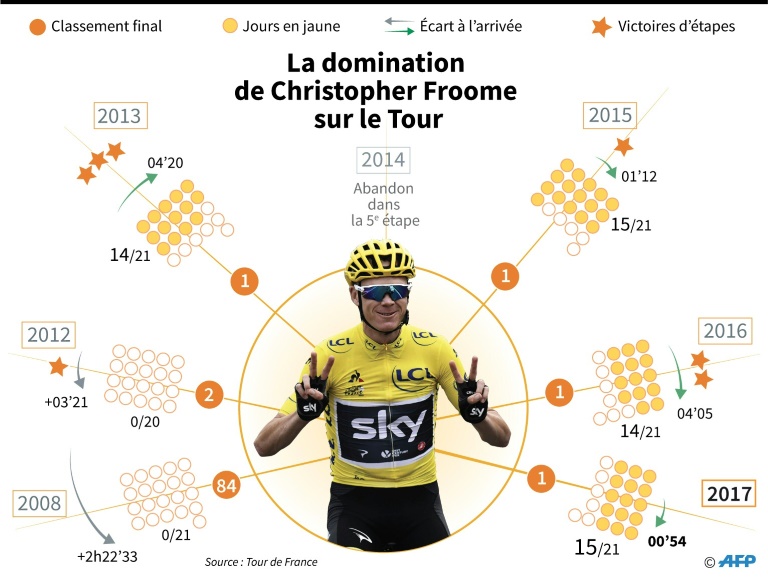 Son succès dans le Tour de France, acquis en "maître du temps" dans les contre-la-montre, place Chris Froome tout près du record des cinq victoires mais, à 32 ans, le Britannique voit la concurrence se rapprocher.