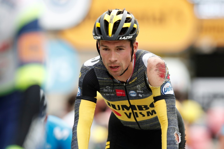 Quelques minutes plus tÎt, son dauphin de l'édition 2020, le SlovÚne Primoz Roglic, s'était retrouvé au sol avec plusieurs de ses équipiers de Jumbo. Il était reparti avec un retard supérieur à une minute sur le peloton, à 10 kilomÚtres de l'arrivée.
