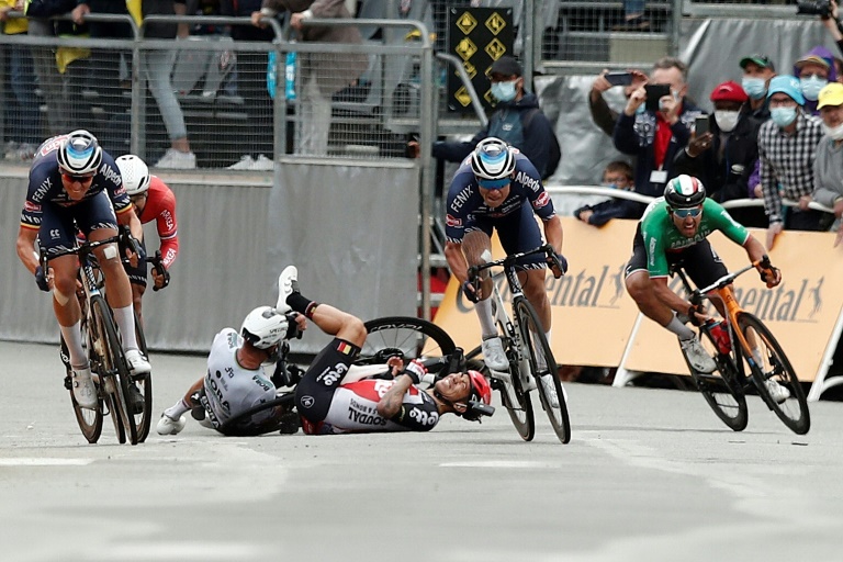 Dans le sprint, l'Australien Caleb Ewan a chuté dans la derniÚre courbe et entraßné au sol le Slovaque Peter Sagan. Les trois premiers favoris du Tour ont tous connu des problÚmes dans cette étape de plaine, la troisiÚme en Bretagne.