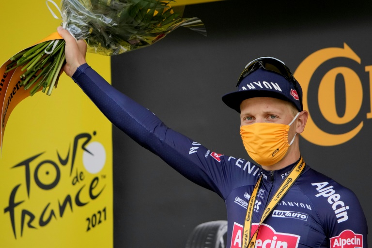 Le Belge Tim Merlier (Alpecin) est sorti vainqueur d'un final-hĂ©catombe dans la 3e Ă©tape du Tour de France, lundi, Ă Pontivy. Le NĂ©erlandais Mathieu van der Poel, de la mĂȘme Ă©quipe, a gardĂ© le maillot jaune.
