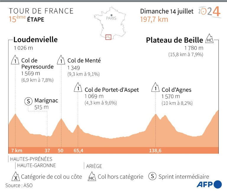 La fin d'étape aurait pu être encore plus dure si, au lieu de tourner à gauche à la sortie du village de Soulan, le peloton prenait à droite pour monter au col du Portet où Pogacar garde d'excellents souvenirs après s'y être imposé en 2021, l'année de sa dernière victoire.
