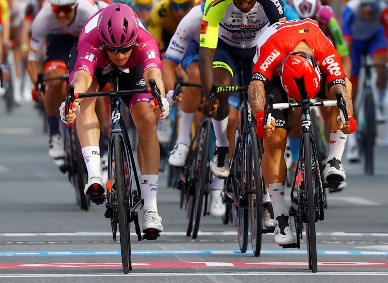 Démare, 30 ans, a remporté sa septième victoire d'étape dans le Giro. Il est devenu le coureur français le plus souvent victorieux dans ce classement des étapes, devant deux légendes, Jacques Anquetil et Bernard Hinault (6 étapes).