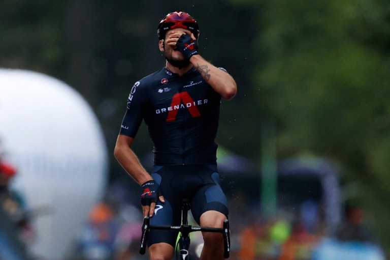 "Hier (mardi), Geraint Thomas m'a dit de partir en échappée. Au fond, j'ai respecté les ordres de mon capitaine même si maintenant il est malheureusement à la maison", a déclaré le géant piémontais, 1,93 m pour un poids habituel de 82 kg. "Mais, ce matin, j'étais à 83 kilos", a-t-il avoué en souriant.