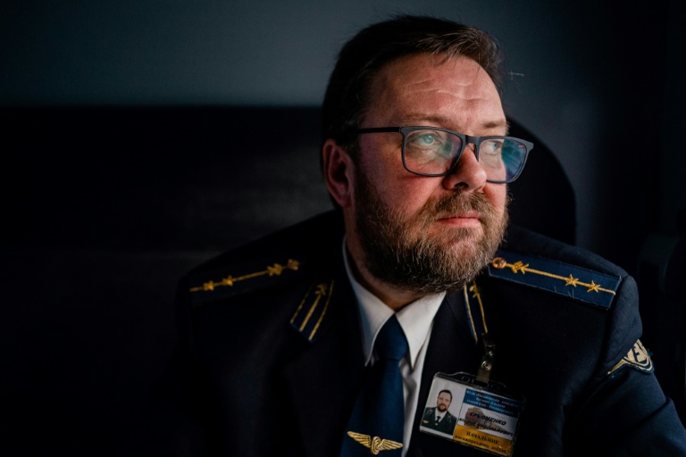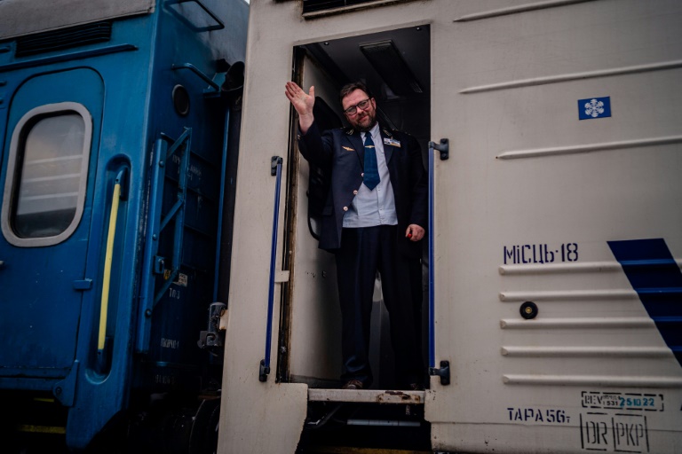La guerre a laissé son empreinte sur Andriï Ieriomenko : "Ma barbe est devenue grise", plaisante ce conducteur de train ventripotent de 53 ans, assis dans un wagon dans son uniforme bleu.