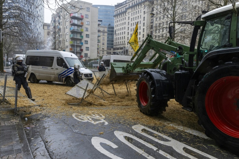 Des agriculteurs ont fait face à la police anti-émeutes lundi dans les rues de Bruxelles paralysées par des centaines de tracteurs, en marge d'une réunion des ministres des Vingt-Sept prêts à réviser la Politique agricole commune (PAC).