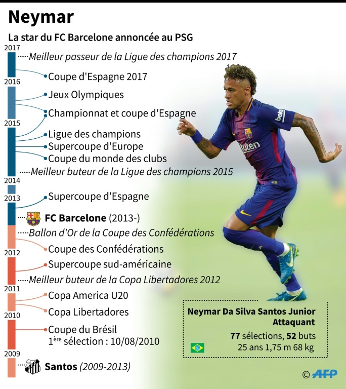 Transfert du siÚcle, car il fait plus que doubler le record actuel des 105 millions d'euros, hors bonus, dépensés à l'été 2016 pour le transfert de Paul Pogba de la Juventus Turin à Manchester United. Neymar, 3e au Ballon d'Or 2015, est considéré comme le joueur au plus grand potentiel sportif et marketing du monde.