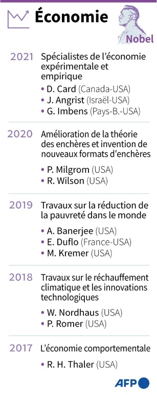 L'an dernier, l'Américano-Canadien David Card, l'Américano-Israélien Joshua Angrist et l'Américano-Néerlandais Guido Imbe avaient été sacrés pour leurs travaux en économie expérimentale.