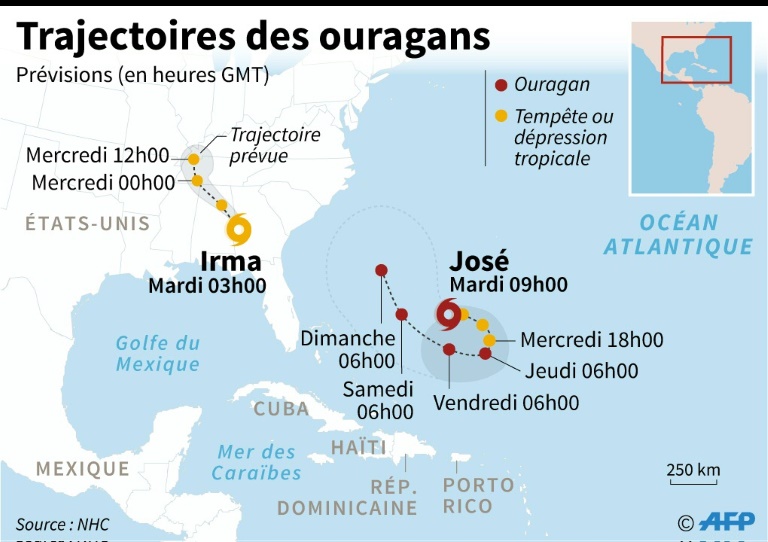 Donald Trump est attendu jeudi en Floride pour constater les dégâts. Dans une allusion à son grand chantier politique du moment, le président américain a estimé mercredi sur Twitter que les "dévastations de Irma et de Harvey" rendaient "les baisses d'impôts et les réformes fiscales encore plus nécessaires".