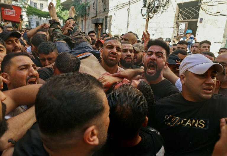 Le corps d'Ibrahim al-Nabulsi a été transporté par une dizaine d'hommes armés à l'hôpital Rafidia de Naplouse, où des centaines de Palestiniens se sont rassemblés.