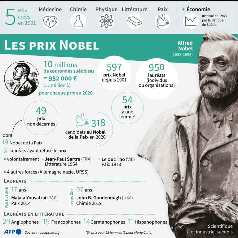 Si les prix Nobel vont bien être annoncés comme prévu cette semaine, le coronavirus a entraîné l'annulation de la cérémonie physique de remise des prix, le 10 décembre à Stockholm.