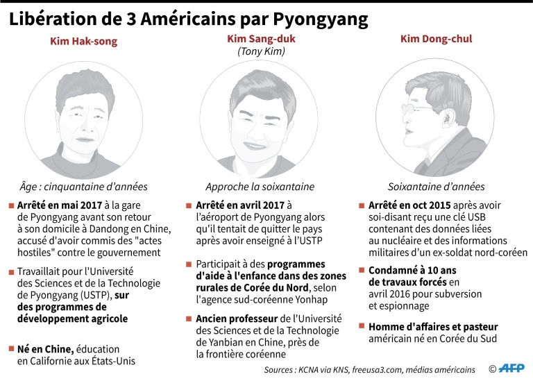 La détente éclair occasionnée par les jeux Olympiques d'hiver organisés au Sud tranche avec les vives tensions à l??uvre sur la péninsule il y a encore quelques mois, lorsque MM. Trump et Kim échangeaient alors insultes personnelles et menaces apocalyptiques. De nombreux élus américains ont salué la libération des trois hommes.
