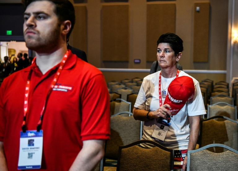 L'intervention prochaine de l'ancien président a changé l'ambiance dans l'hôtel où se tient la convention. Ont ainsi fleuri des banderoles "Trump 2024" - l'année de la présidentielle à venir - et des pin's proclamant que la dernière élection, remportée par le démocrate Joe Biden, lui a été volée.