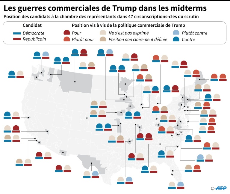 Accusé par les démocrates d'avoir décomplexé l'extrême-droite et d'avoir servi de catalyseur à l'attaque mortelle dans une synagogue de Pittsburgh, il fait campagne sur deux thèmes principaux: la bonne santé économique du pays, et la lutte contre l'immigration clandestine, qu'il lie à l'insécurité.