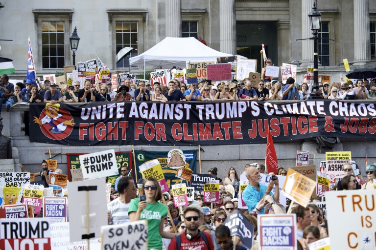 Pendant ce temps-là à Londres, des manifestations contre la venue de M. Trump ont rassemblé plusieurs dizaines de milliers de personnes à Trafalgar Square pour dénoncer sa politique migratoire, son "sexisme" et son "déni" du changement climatique.