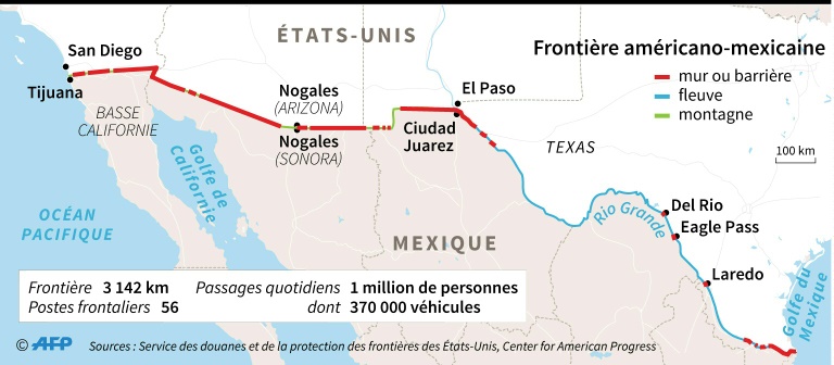 Les clandestins "submergent notre système d'immigration et ça ne peut plus continuer", lors d'une rencontre avec des agents de la police aux frontières, avant d'aller inspecter un tronçon du mur qu'il entend ériger entre les deux pays. "Notre système est complet, on ne peut plus vous accepter. Notre pays est complet", a-t-il martelé. "Alors rebroussez chemin".
