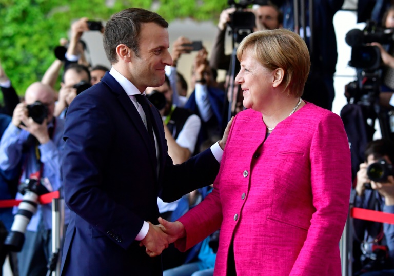A Berlin, où il effectuait son premier déplacement présidentiel à l'étranger au lendemain même de son investiture, M. Macron a été reçu à bras ouverts par la chancelière, visiblement ravie de sa victoire contre Marine Le Pen, la présidente du Front national (extrême droite).
