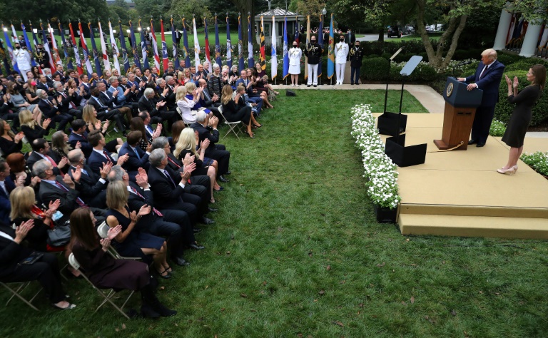 Ainsi le samedi 26 septembre, des dizaines d'élus et de personnalités républicaines s'y sont pressés pour la nomination par Donald Trump de la juge Amy Coney Barrett à la Cour suprême, en extérieur mais aussi en intérieur -- un événement qui lie de nombreux cas positifs déclarés ces derniers jours, dont des sénateurs et des collaborateurs présidentiels.