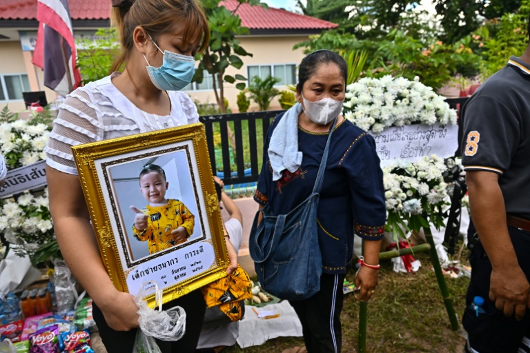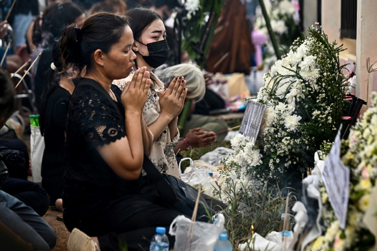 Des familles endeuillées se sont agenouillées dimanche devant une crèche de Thaïlande où une vingtaine d’enfants ont été tués, lors d’une cérémonie bouddhiste visant à assurer le repos de leurs âmes au deuxième jour de rituels funéraires.
