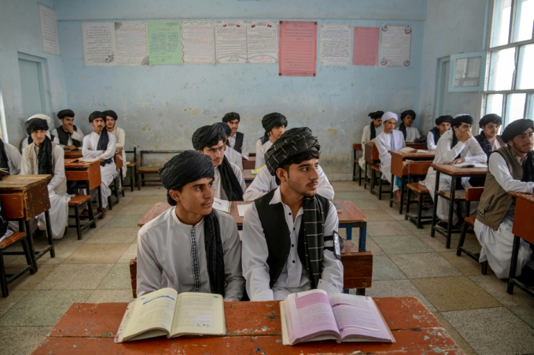 Au placard l'uniforme d'écolier: depuis la rentrée en mars, les jeunes Afghans doivent porter l'habit traditionnel des talibans, turbans et longues tuniques, et n'ont plus que leurs visages glabres pour se distinguer des adultes.
