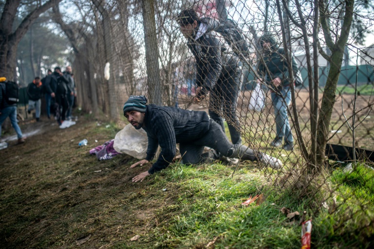 Bloqués à Pazarkule, quelques milliers d'entre eux ont passé la nuit emmitouflés dans des couvertures, allumant des feux de camp pour se réchauffer. Dimanche matin, de petits groupes de Syriens, d'Afghans et d'Irakiens notamment, dont des femmes et des enfants, continuaient d'affluer, marchant en file indienne au bord d'une route, sac sur le dos ou sur la tête. Masque hygiénique sur le visage, des gendarmes turcs leur faisaient signe de la main d'avancer.
