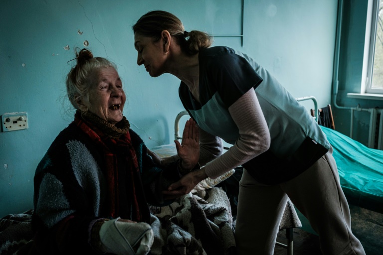 Devant la maison de son patron, récemment touchée par un bombardement, Vassili Kouchtch, jure contre ces "enfoirés de Russes" qui détruisent chaque jour un peu plus son village, puis reprend sa pelle : "Je dois travailler. Je n'ai nulle part d'autre où aller."