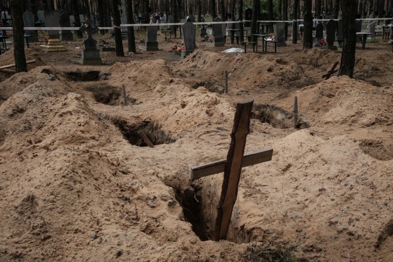 Après le retrait des forces russes de ces zones, les autorités ukrainiennes ont annoncé multiplier les découvertes macabres, avec notamment un site d'enterrement de masse de plus de 400 tombes dans une forêt près de la ville clé d'Izioum.