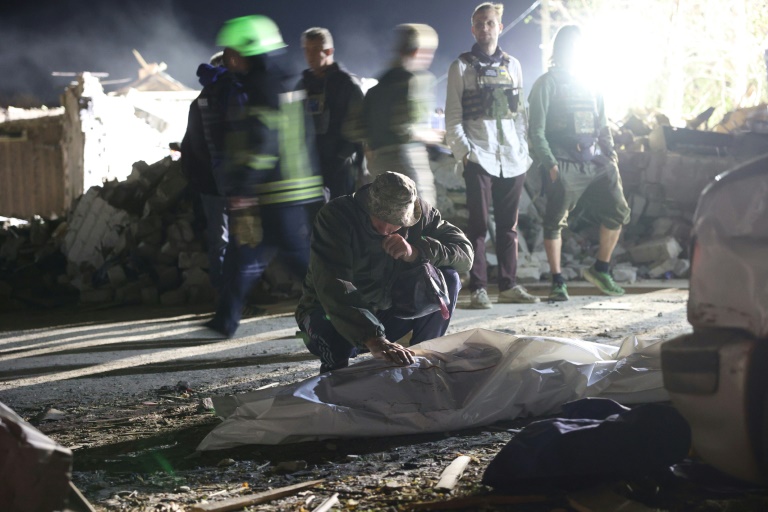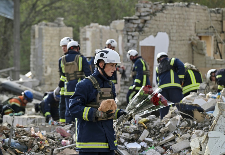 La veille, au moins 52 personnes, dont un enfant de six ans, sont mortes dans le bombardement à Groza, dans la région de Kharkiv, où les habitants étaient rassemblés en marge des funérailles d'un soldat, selon un nouveau bilan du gouverneur.