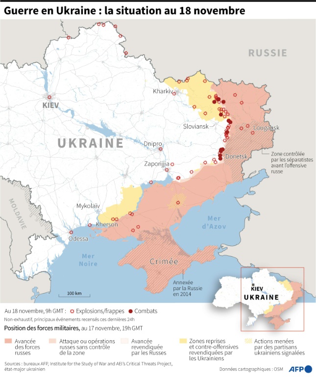La Russie a annoncé vendredi effectuer des travaux de fortification dans la péninsule de Crimée annexée, après le repli de ses soldats dans la région ukrainienne voisine de Kherson face à une contre-offensive de Kiev.