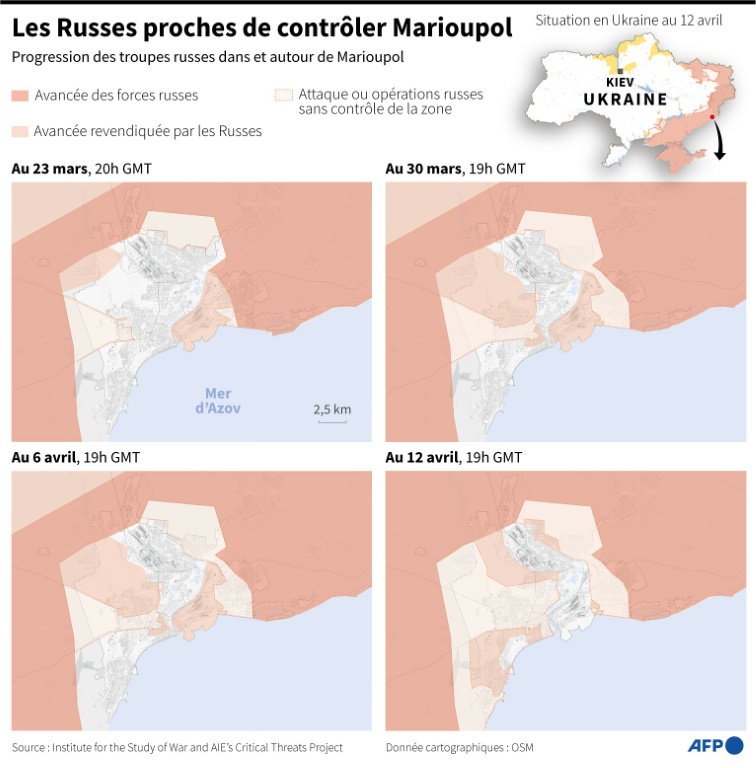 La Russie, dont l'offensive massive annoncée dans le Donbass n'a toujours pas commencé, peine à prendre le contrôle total de Marioupol, un port stratégique de la mer d'Azov.