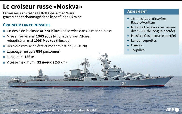 La Russie a affirmé jusqu'à présent que le croiseur Moskva, navire amiral de sa flotte de la mer Noire, avait subi mercredi un incendie et des détonations de ses propres munitions. Le navire a coulé jeudi.