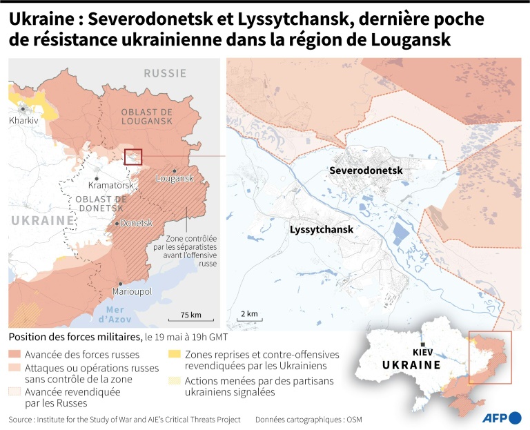Selon Serguiï Gaïdaï, gouverneur ukrainien de la région de Lougansk, "les Russes jettent tous leurs efforts pour capturer Severodonetsk" où les frappes "ont été multipliées plusieurs fois ces derniers jours".
