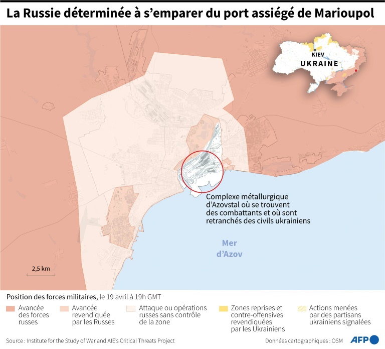 Au moins 1.000 civils, surtout des femmes, enfants et personnes âgées, sont terrés, avec les combattants, "dans les abris souterrains" de l'usine, avait affirmé mardi le conseil municipal de Marioupol, qui redoute que plus de 20.000 civils soient déjà morts dans la ville.
