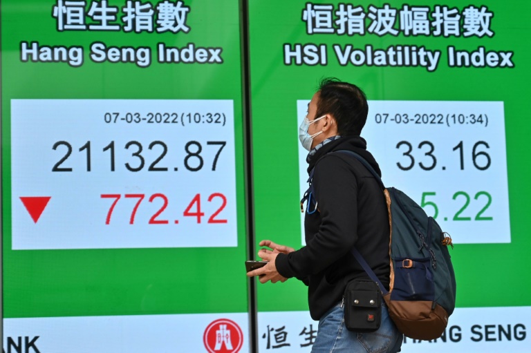 Les cours du pétrole continuaient de flamber lundi en Asie, tout comme le prix de l'or qui dépassait les 2.000 dollars l'once, tandis que les Bourses de la région dégringolaient face aux répercussions de la guerre russo-ukrainienne sur l'économie mondiale.