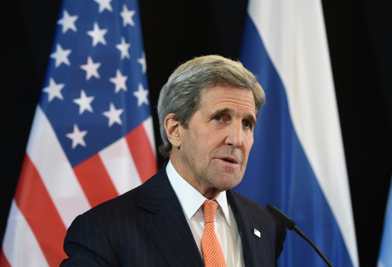 Le secrétaire d'Etat américain John Kerry a déclaré samedi que les sanctions imposées à la Russie en raison de la crise ukrainienne devaient être maintenues "aussi longtemps que nécessaire", alors que certains pays européens, dont la France, visent leur levée.
