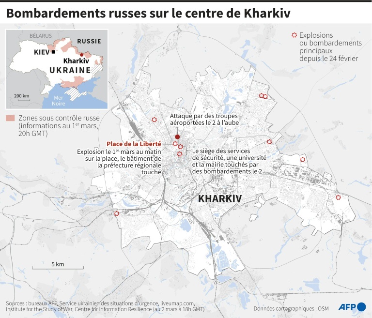 Sur le terrain, au septième jour de l'offensive déclenchée par Vladimir Poutine en Ukraine, des unités aéroportées russes ont débarqué à Kharkiv, la deuxième ville du pays, située dans l'est à 50 km de la frontière avec la Russie, a affirmé l'armée ukrainienne.