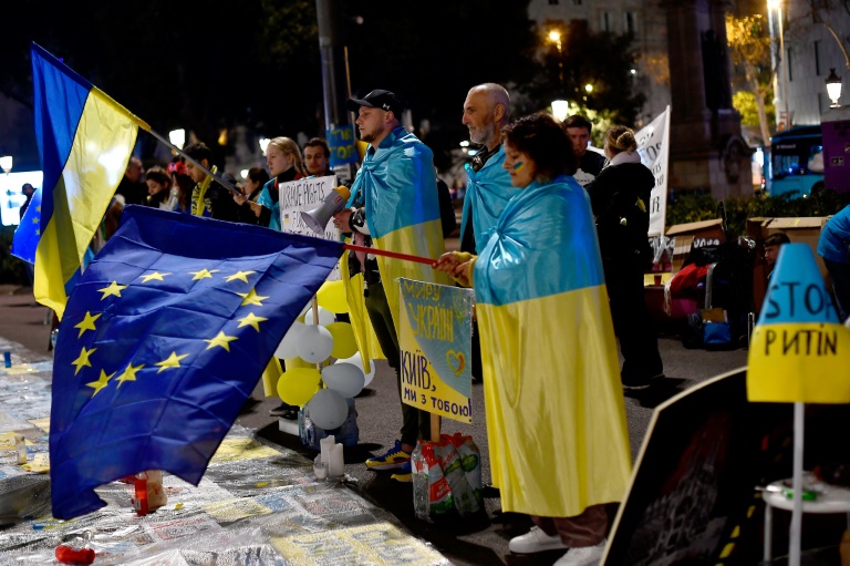 Les frappes sur Kiev et Kharkiv ont suscité une vive émotion dans le monde, où manifestations contre la guerre, gestes de solidarité avec l'Ukraine et sanctions tous azimuts se sont multipliés ces derniers jours.