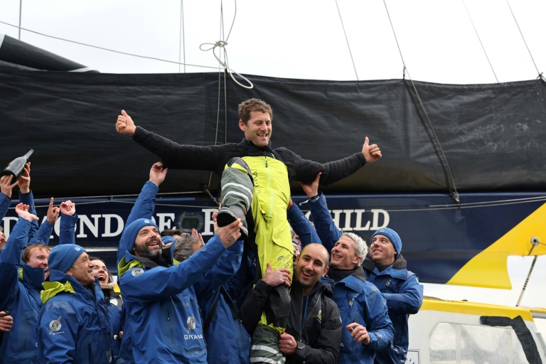 Le skipper -- qui a fêté ses 50 ans lundi -- a coupé la ligne 50 jours 19 heures 7 minutes et 42 secondes après être parti de Bretagne, environ huit jours de plus seulement que le record détenu par François Gabart depuis 2017 (42 jours 16 heures 40 minutes 35 secondes), réalisé contre la montre et non en course.