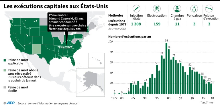 Dans ce contexte, le "choix" d'Edmund Zagorski "en dit long sur l'échec des injections létales", a commenté pour l'AFP le directeur du Centre d'information sur la peine de mort (DPIC), Robert Dunham, avant la mise à mort. Les injections létales sont la méthode d'exécution la plus fréquente aux Etats-Unis. Mais elles sont vivement contestées en raison de défaillances possibles de la drogue utilisée pour anesthésier les condamnés.
