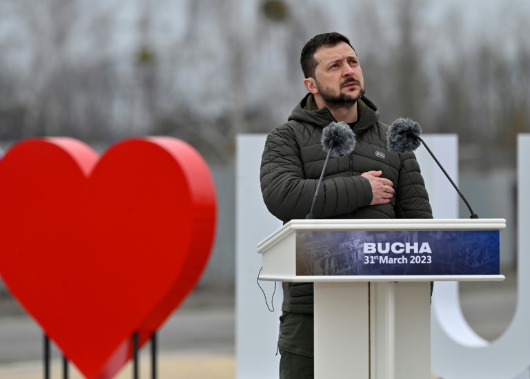 Le président Volodymyr Zelensky a salué dimanche la résistance ukrainienne contre "la plus grande force contre l'humanité de notre temps", au premier anniversaire de la découverte de corps de civils tués à Boutcha, ville devenue symbole des atrocités commises par les Russes.
