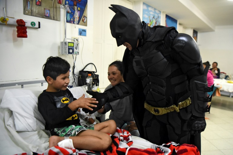 Il entre à l'Hôpital public Soeur Maria Ludovica chargé de dessins et de bonbons. Les enfants l'accueillent avec des rires. Assis sur son lit, vêtu d'un pyjama Batman, Pablo Valdez, 7 ans, est hilare. Il échange un salut avec le super-héros, poing contre poing. Les visites de Batman, "donnent du courage aux enfants qui souffrent", estime Celia Quiroz, mère du garçon, hospitalisé pour une infection qui l'empêche de marcher. Soeur Adriana, complice du Batman argentin, le guide dans les couloirs de l'établissement. Dans la chapelle, de l'hôpital, il se signe avant d'entrer en action.