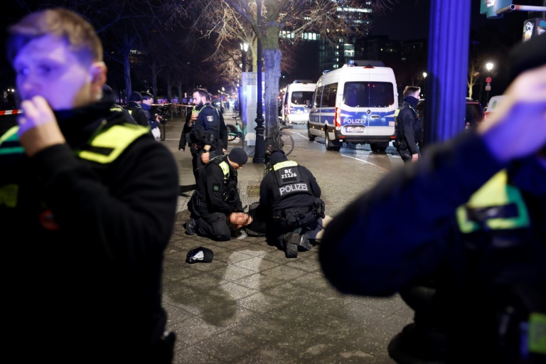 Des journalistes de l'AFP présents sur les lieux, en plein centre de la capitale allemande, ont filmé et photographié vers 20h45 locales (23h45 à La Réunion) l'arrestation d'un jeune homme, plaqué au sol par plusieurs policiers, qui l'ont menotté mains dans le dos.