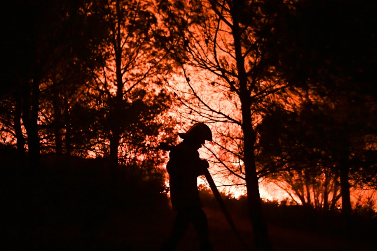 "L'incendie est très très gros, c'est impressionnant. On voit les flammes sur la ligne de crête des collines, et les lumières bleues des pompiers qui scintillent", a décrit à l'AFP Danièle, une habitante de Hyères.