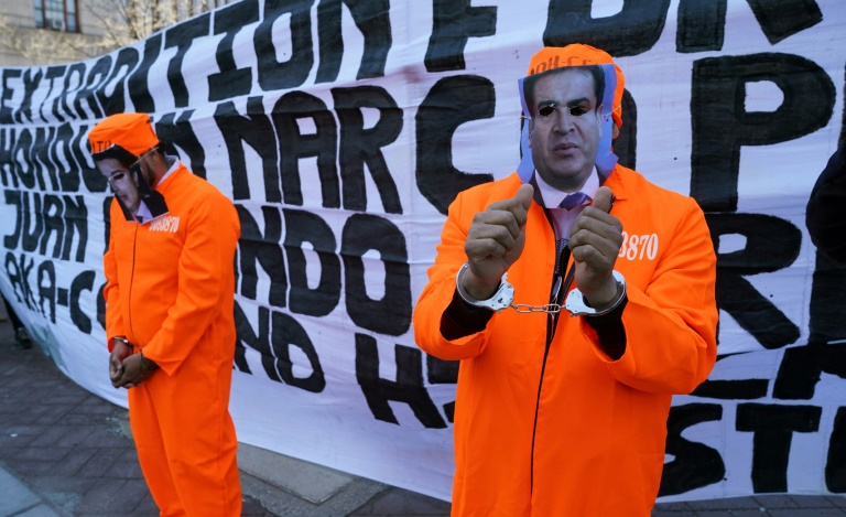 Mardi, une trentaine de manifestants attendaient devant le tribunal de Manhattan, armés de panneaux disant notamment "Fuera JOH" (JOH dehors). Des opposants au président hondurien avaient déjà manifesté à la fin du procès pour demander sa démission.