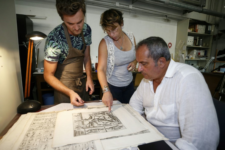 Pour enlever "la poussière et les excréments d'insectes", ce spécialiste l'a "lavé dans un mélange d'eau et d'alcool éthylique" pour réduire l'acidité -destructrice- du papier. Puis, sur une table lumineuse, il applique à l'aide d'un fer à repasser miniature du papier japonais à pH neutre pour combler un trou. Une opération renouvelée encore et encore. "L'état du livre était assez bon". "Le fait qu'il ait été oublié l'a finalement préservé", note-t-il.