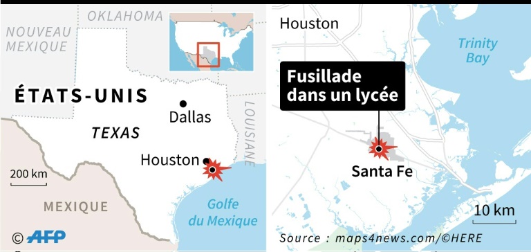"Il y a plusieurs morts confirmés. Le nombre varie mais ce pourrait être entre huit et dix morts", a indiqué lors d'une brève conférence de presse Ed Gonzalez, shérif du comté de Harris qui a envoyé des renforts au comté de Galveston où se trouve la petite ville de Santa Fe. "On me dit que la majorité sont probablement des étudiants", a affirmé le shérif, précisant que des membres du personnel en faisaient également partie.