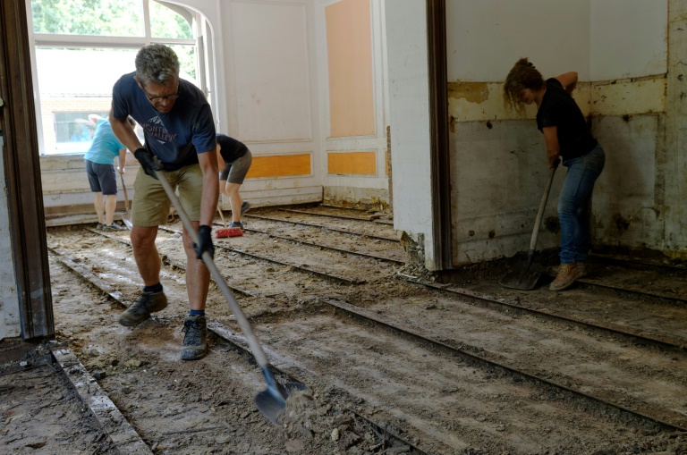 Les plus jeunes habitants de Trooz font, eux, face à un défi pressant: l'école libre de Fraipont, sur les bords de la rivière entre des arbres et un remblais ferroviaire partiellement effondré, reste emplie de boue à trois semaines de la rentrée des classes. En fin de semaine dernière, des volontaires réunis par les services sociaux de Soignies, une ville à 100 km de là, nettoyaient le hall d'entrée tandis que le personnel d'une école libre flamande évacuait terre et débris d'une salle de classe.