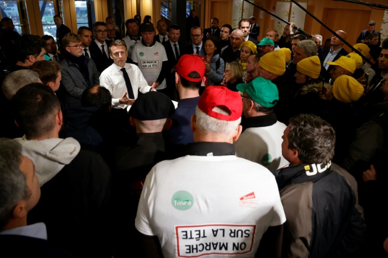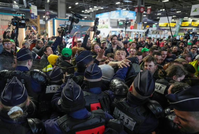 En février 2024, le président Emmanuel Macron est hué au Salon de l'agriculture, en dépit des plus de 500 millions d'euros d'aide promis. "Ici c'est chez nous", clament des agriculteurs qui ont enfoncé une rangée de CRS avant d'être repoussés.