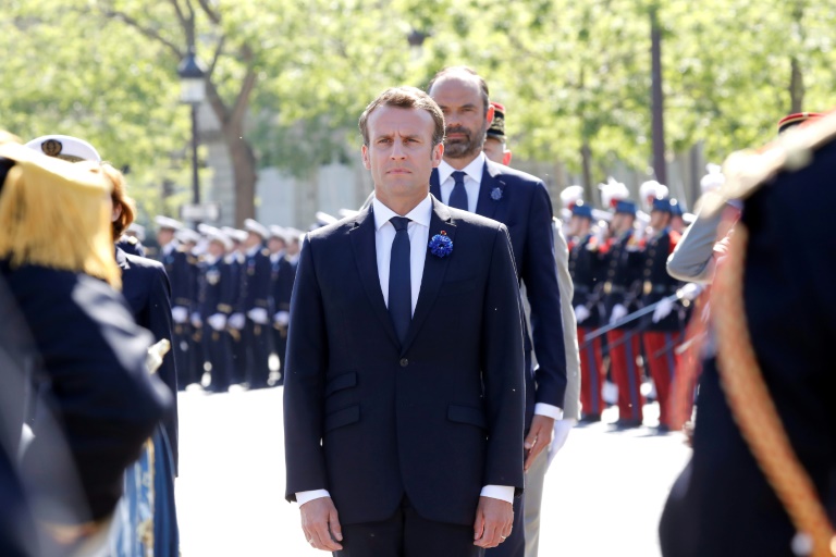 Emmanuel Macron a célébré mardi des cérémonies du 8-Mai, 73e anniversaire de la victoire de 1945, sur un mode traditionnel, en présence de descendants du général de Gaulle et de l'ancien président Nicolas Sarkozy, mais sans François Hollande.